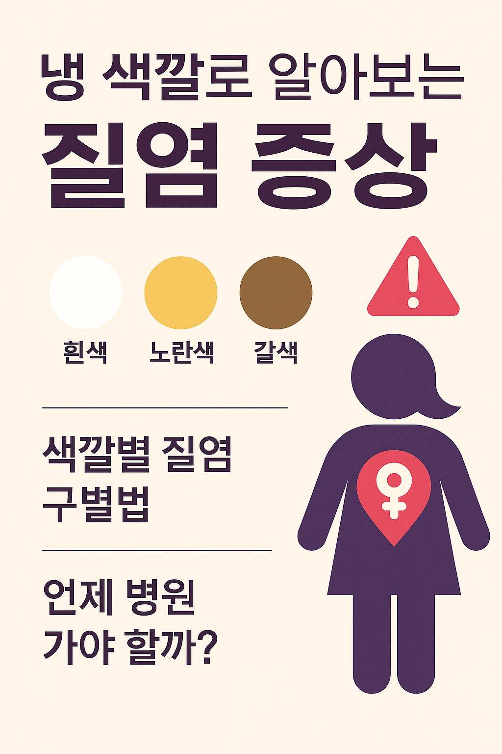 이 글에서는 냉의 색깔별로 어떤 질환이 의심되는지, 위험 신호는 무엇이며, 어떻게 대처하면 좋을지 여성들이 가장 궁금해하는 포인트를 중심으로 정리했습니다.