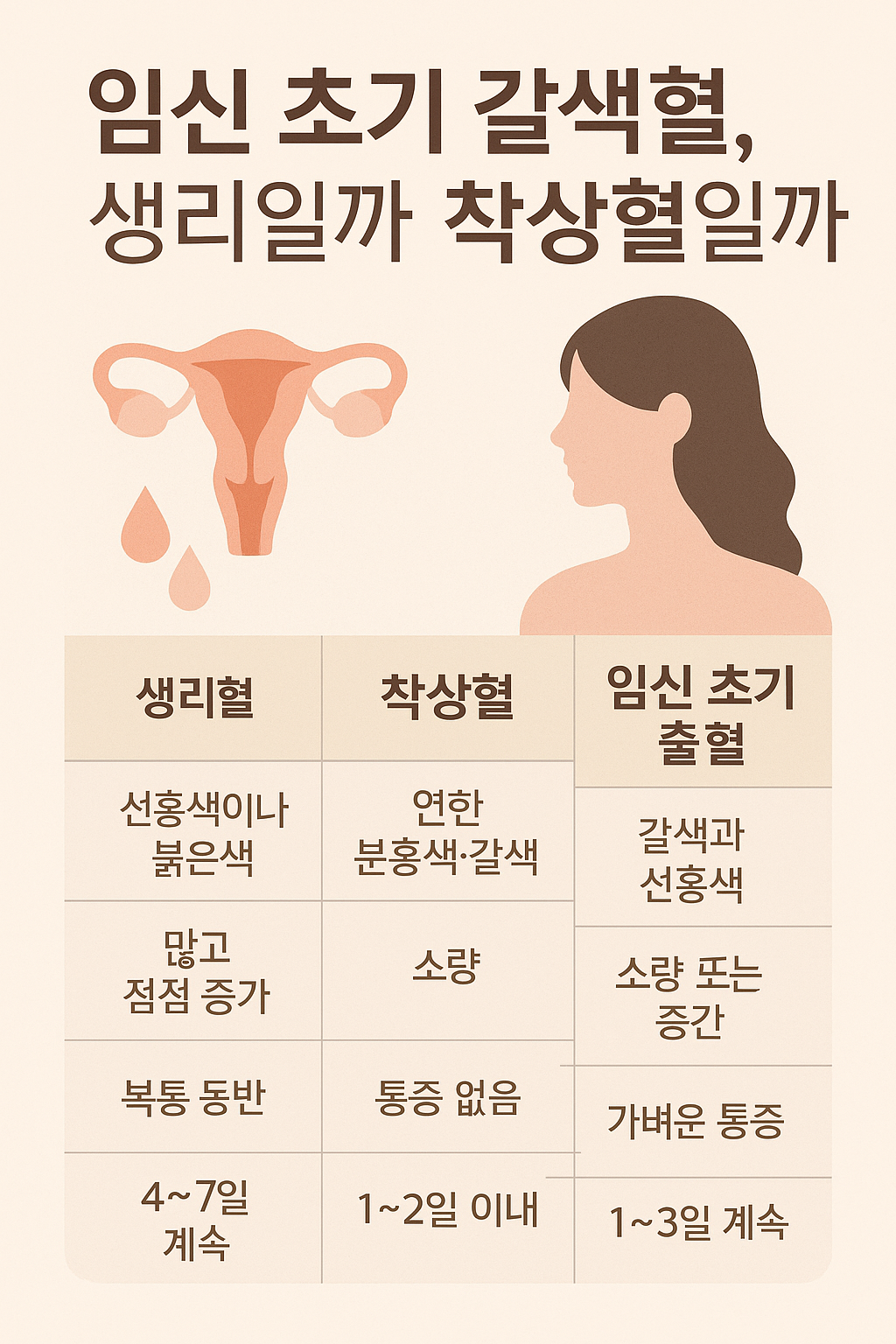 ✅ 생리혈 vs 착상혈 vs 임신 초기 출혈 비교표